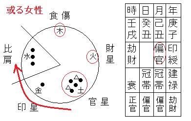 上図は或る架空の女性の命式です。