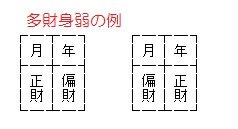 多財身弱とは、財星を重ねて(双並び・三並び)見る四柱のこと。